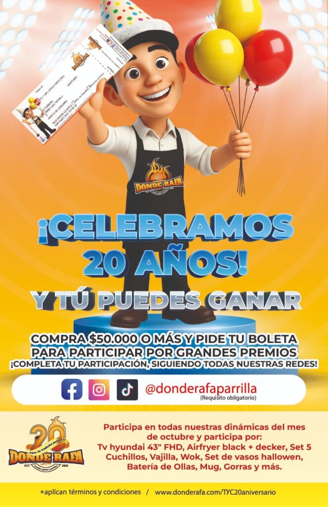 El presente concurso es organizado por DONDE RAFA PARRILLAS (en adelante «El Organizador»), en el marco de la celebración de su 20° aniversario.